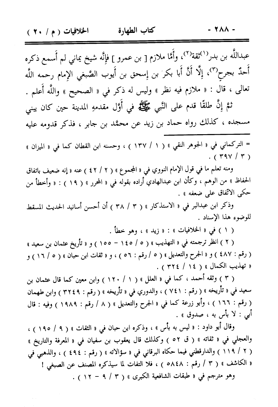 عبد الله بن بدر ثقة، وأما ملازم [بن عمرو] فإنه شيخ يماني لم أسمع ذكره أحدٌ بجرحٍ، إلا أن أبا بكر بن إسحق بن أيوب الصبغي الإمام رحمه الله تعالى، قال: ((ملازم فيه نظر)) وليس له ذكر في ((الصحيح)) والله أعلم.
