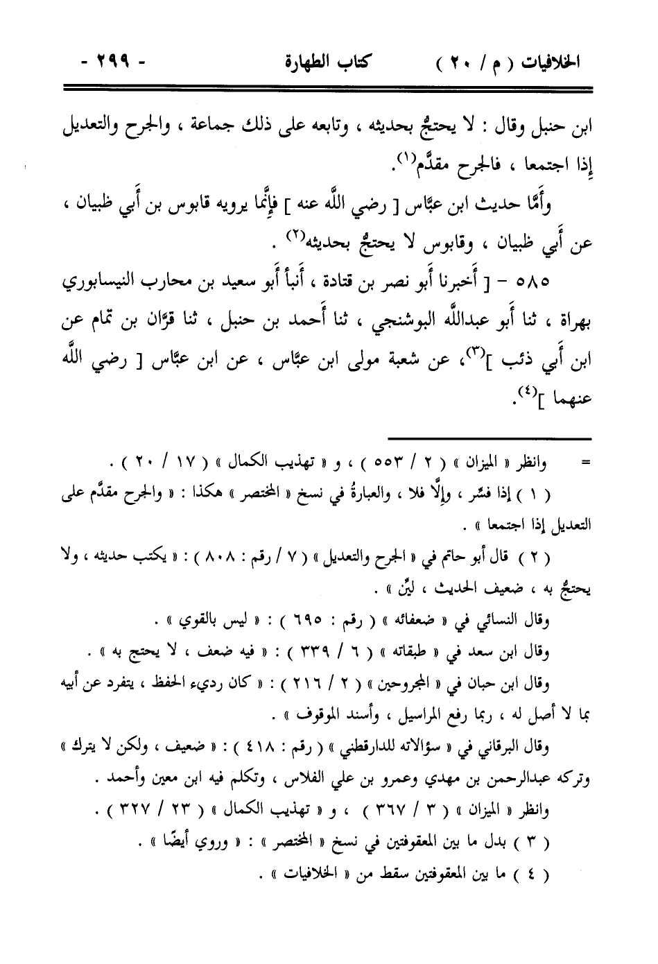 585- [أخبرنا أبو نصر بن قتادة، أنبأ أبو سعيد بن محارب النيسابوري بهراة، ثنا أبو عبد الله البوشنجي، ثنا أحمد بن حنبل، ثنا قران بن تمام عن ابن أبي ذئب]، عن شعبة مولى ابن عباس، عن ابن عباس [رضي الله عنهما].