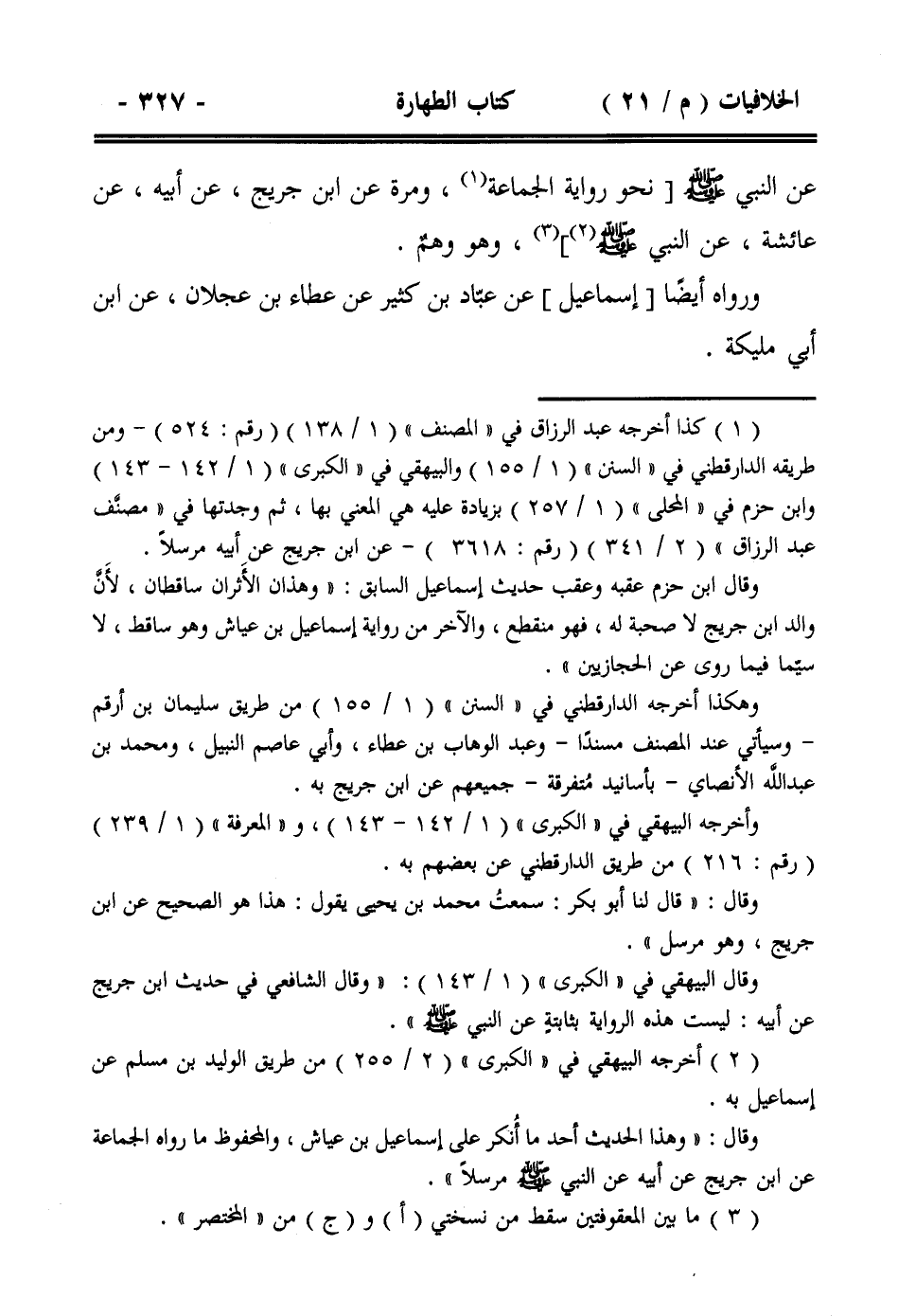 عن النبي صلى الله عليه وسلم [نحو رواية الجماعة، ومرة عن ابن جريج، عن أبيه، عن عائشة، عن النبي صلى الله عليه وسلم ]، وهو وهمٌ.