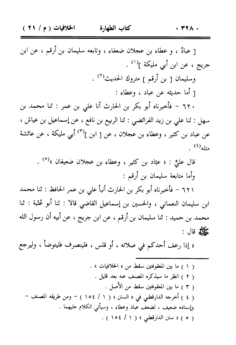 621- فأخبرناه أبو بكر بن الحارث أنبأ علي بن عمر الحافظ: ثنا محمد ابن سليمان النعماني، والحسين بن إسماعيل القاضي قالا: ثنا أبو عتبة: ثنا محمد بن حميد: ثنا سليمان بن أرقم، عن ابن جريج، عن أبيه أن رسول الله صلى الله عليه وسلم قال: