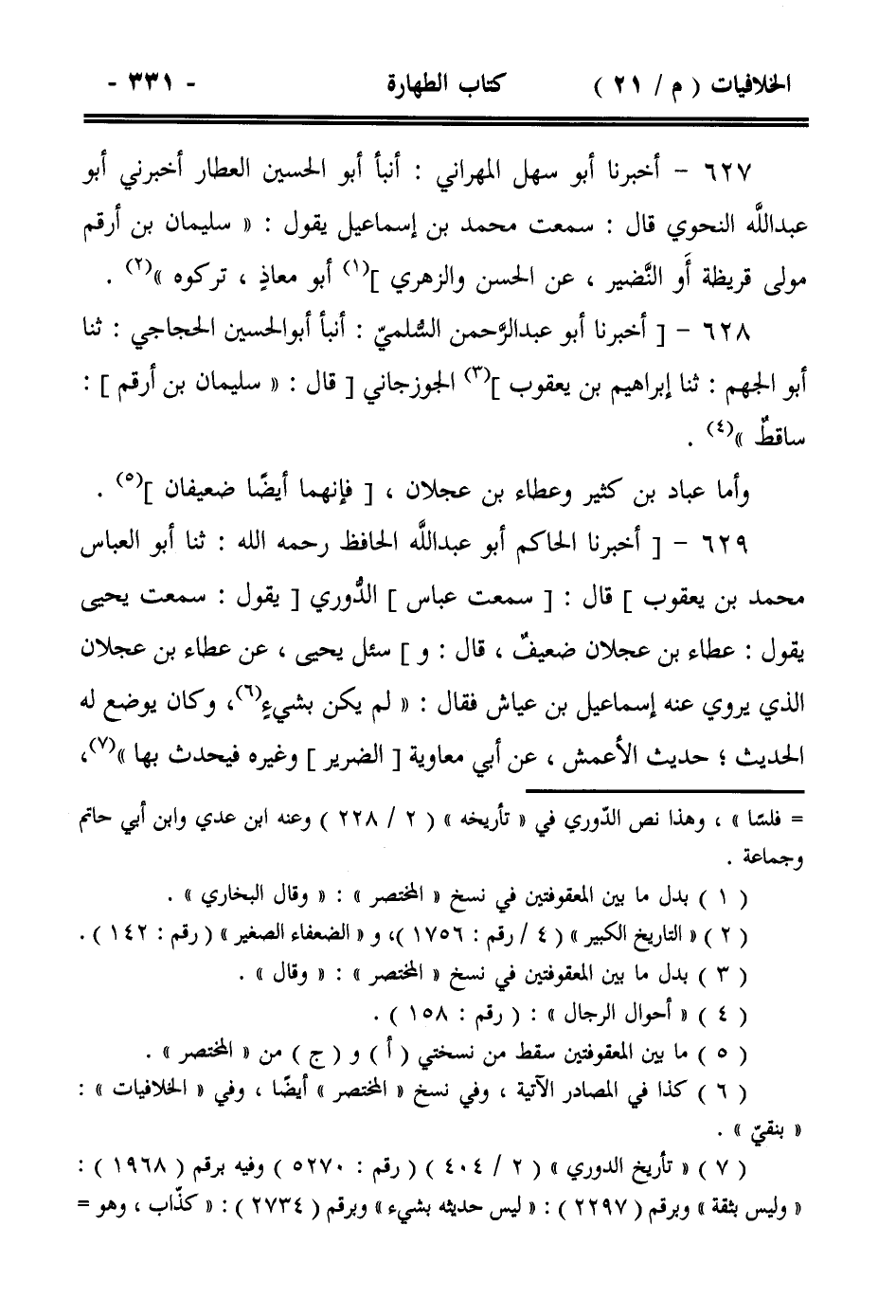 627- أخبرنا أبو سهل المهراني: أنبأ أبو الحسين العطار أخبرني أبو عبد الله النحوي قال: سمعت محمد بن إسماعيل يقول: ((سليمان بن أرقم مولى قريظة أو النضير، عن الحسن والزهري] أبو معاذٍ، تركوه)).