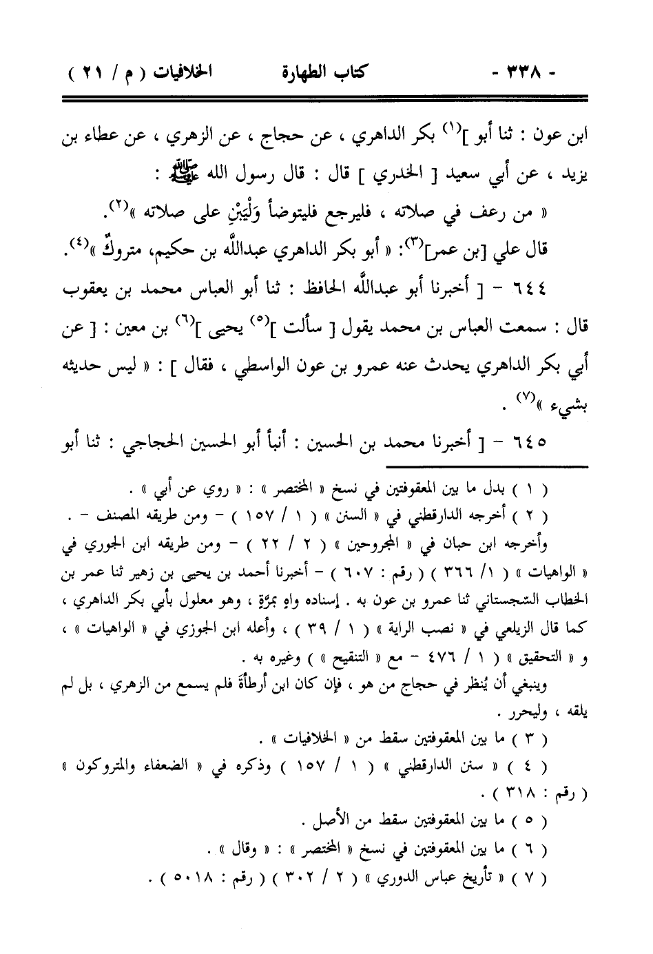 ابن عون: ثنا أبو] بكر الداهري، عن حجاج، عن الزهري، عن عطاء بن يزيد، عن أبي سعيد [الخدري] قال: قال رسول الله صلى الله عليه وسلم :