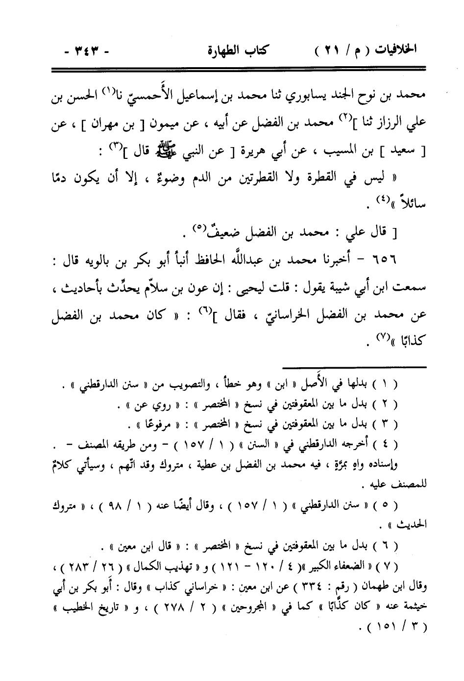 [قال علي: محمد بن الفضل ضعيفٌ.