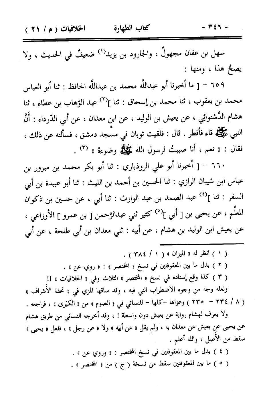 659- [ما أخبرنا أبو عبد الله محمد بن عبد الله الحافظ: ثنا أبو العباس محمد بن يعقوب، ثنا محمد بن إسحاق: ثنا] عبد الوهاب بن عطاء، ثنا هشام الدستوائي، عن يعيش بن الوليد، عن ابن معدان، عن أبي الدرداء: أن النبي صلى الله عليه وسلم قاء فأفطر. قال: فلقيت ثوبان في مسجد دمشق، فسألته عن ذلك، فقال: ((نعم، أنا صببت لرسول الله صلى الله عليه وسلم وضوءه)).