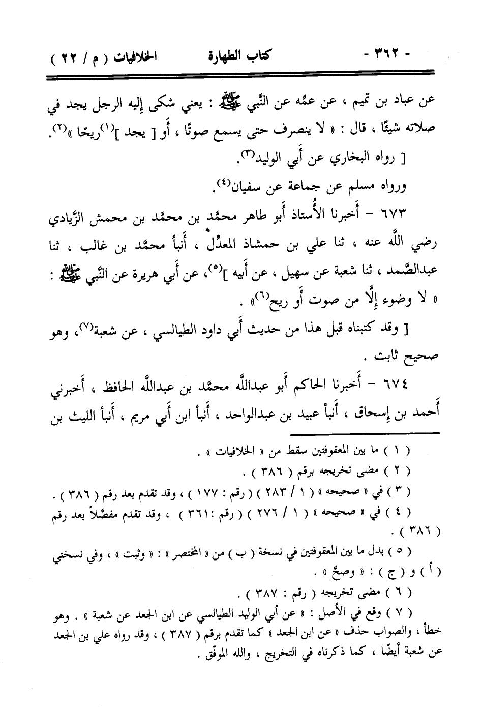 673- أخبرنا الأستاذ أبو طاهر محمد بن محمد بن محمش الزيادي رضي الله عنه، ثنا علي بن حمشاذ المعدل، أنبأ محمد بن غالب، ثنا عبد الصمد، ثنا شعبة عن سهيل، عن أبيه]، عن أبي هريرة عن النبي صلى الله عليه وسلم : ((لا وضوء إلا من صوت أو ريح)).