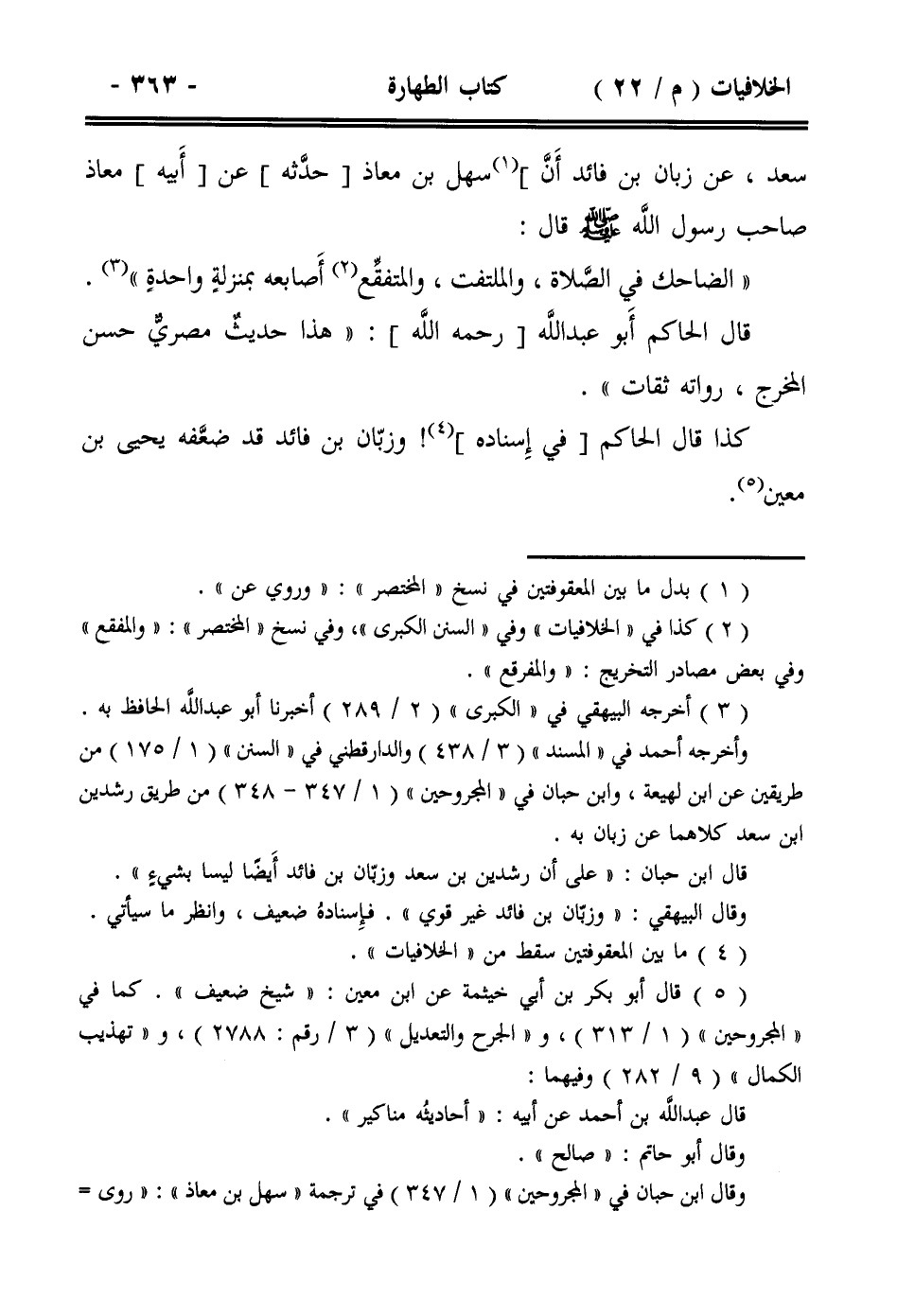 سعد، عن زبان بن فائد أن] سهل بن معاذ [حدثه] عن [أبيه] معاذ صاحب رسول الله صلى الله عليه وسلم قال: