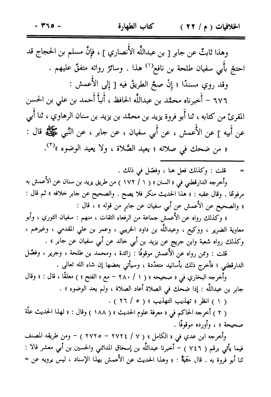 وهذا ثابتٌ عن جابر [بن عبد الله الأنصاري]، فإن مسلم بن الحجاج قد احتج بأبي سفيان طلحة بن نافع هذا. وسائر رواته متفقٌ عليهم.