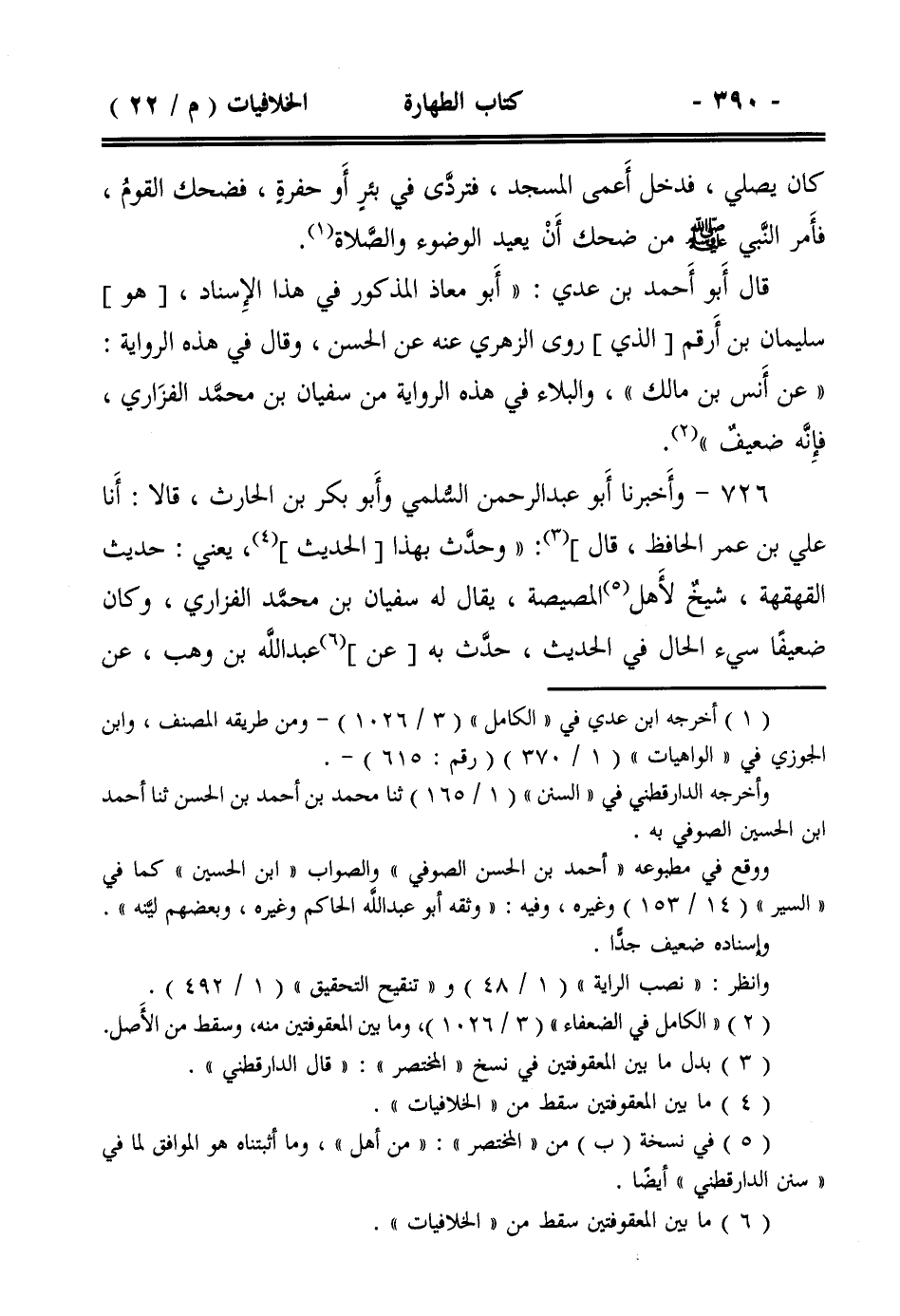 726- وأخبرنا أبو عبد الرحمن السلمي وأبو بكر بن الحارث، قالا: أنا علي بن عمر الحافظ، قال]: ((وحدث بهذا [الحديث]، يعني: حديث القهقهة، شيخٌ لأهل المصيصة، يقال له سفيان بن محمد الفزاري، وكان ضعيفاً سيء الحال في الحديث، حدث به [عن] عبد الله بن وهب، عن