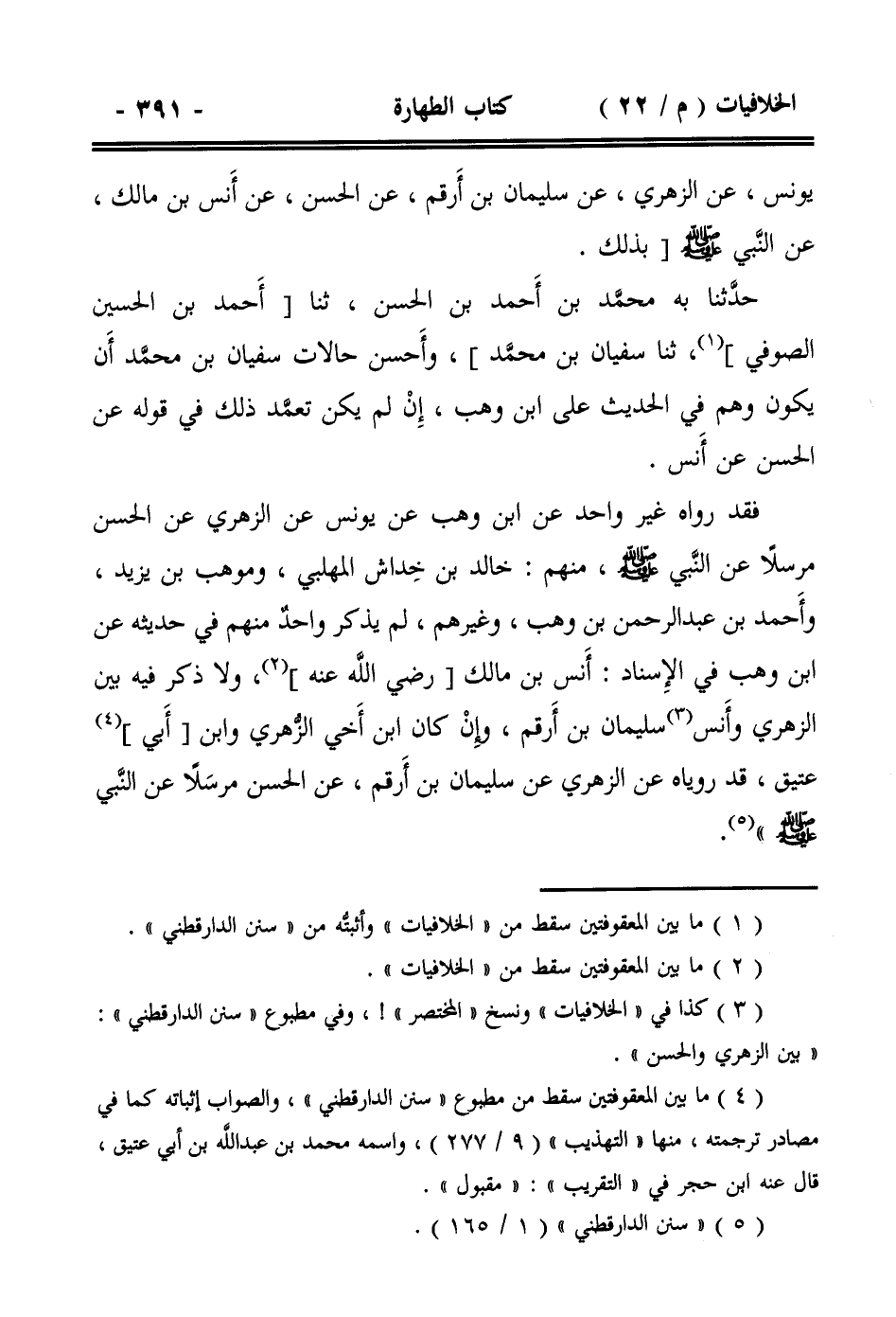 فقد رواه غير واحد عن ابن وهب عن يونس عن الزهري عن الحسن مرسلاً عن النبي صلى الله عليه وسلم ، منهم: خالد بن خداش المهلبي، وموهب بن يزيد، وأحمد بن عبد الرحمن بن وهب، وغيرهم، لم يذكر واحدٌ منهم في حديثه عن ابن وهب في الإسناد: أنس بن مالك [رضي الله عنه]، ولا ذكر فيه بين الزهري وأنس سليمان بن أرقم، وإن كان ابن أخي الزهري وابن [أبي] عتيق، قد روياه عن الزهري عن سليمان بن أرقم، عن الحسن مرسلاً عن النبي صلى الله عليه وسلم )).