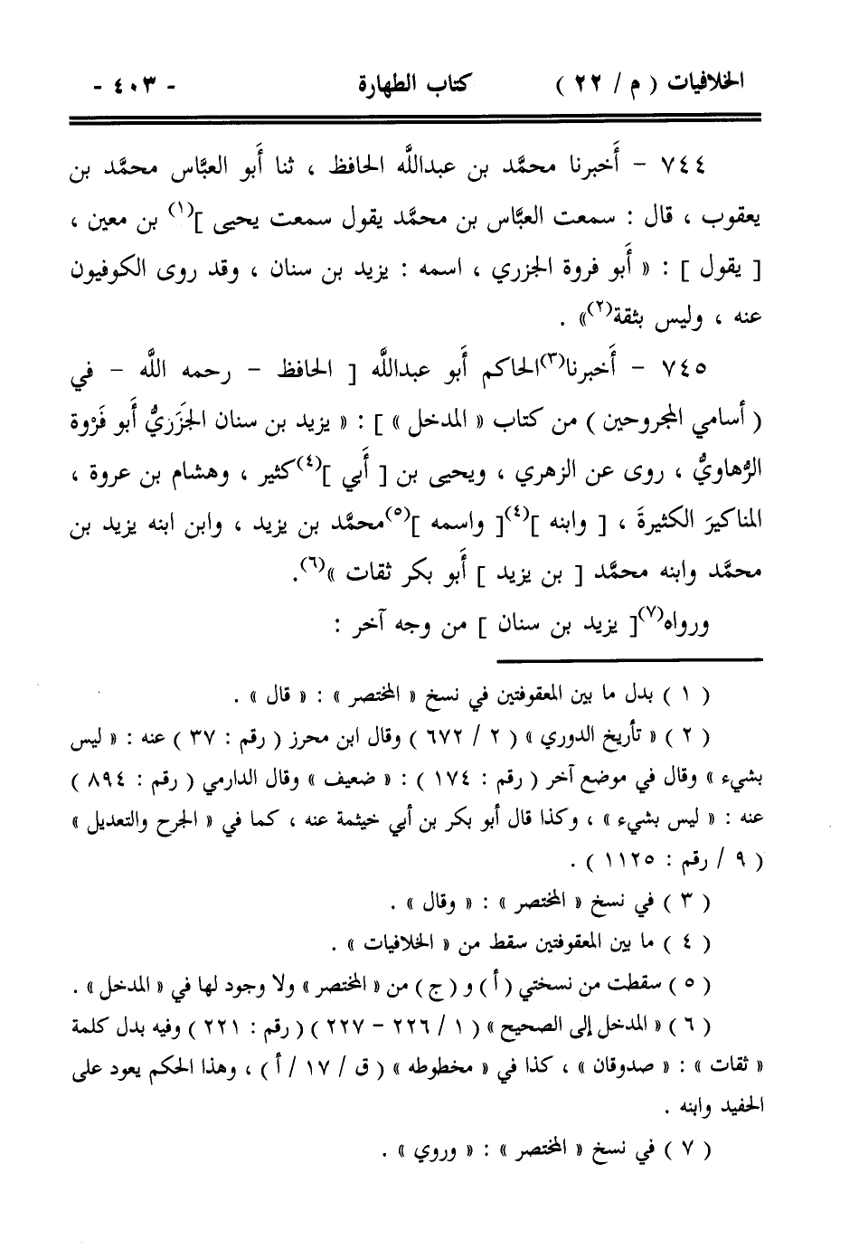 745- أخبرنا الحاكم أبو عبد الله [الحافظ -رحمه الله- في (أسامي المجروحين) من كتاب ((المدخل))]: ((يزيد بن سنان الجزري أبو فروة الرهاوي، روى عن الزهري، ويحيى بن [أبي] كثير، وهشام بن عروة، المناكير الكثيرة، [وابنه] [واسمه] محمد بن يزيد، وابن ابنه يزيد بن محمد وابنه محمد [بن يزيد] أبو بكر ثقات)).