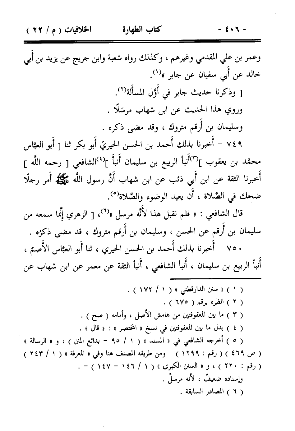 750- أخبرنا بذلك أحمد بن الحسن الحيري، ثنا أبو العباس الأصم، أنبأ الربيع بن سليمان، أنبأ الشافعي، أنبأ الثقة عن معمر عن ابن شهاب عن