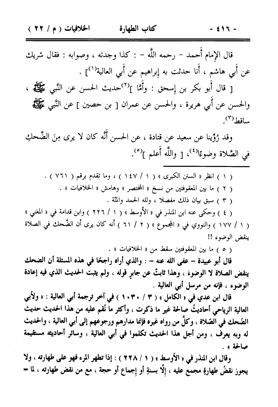 وقد روينا عن سعيد عن قتادة، عن الحسن أنه كان لا يرى من الضحك في الصلاة وضوءاً، [والله أعلم].