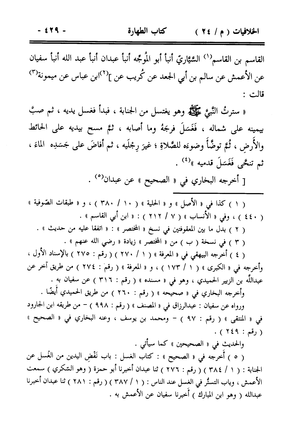القاسم بن القاسم السياري أنبأ أبو الموجه أنبأ عبدان أنبأ عبد الله أنبأ سفيان عن الأعمش عن سالم بن أبي الجعد عن كريب عن] ابن عباس عن ميمونة قالت: