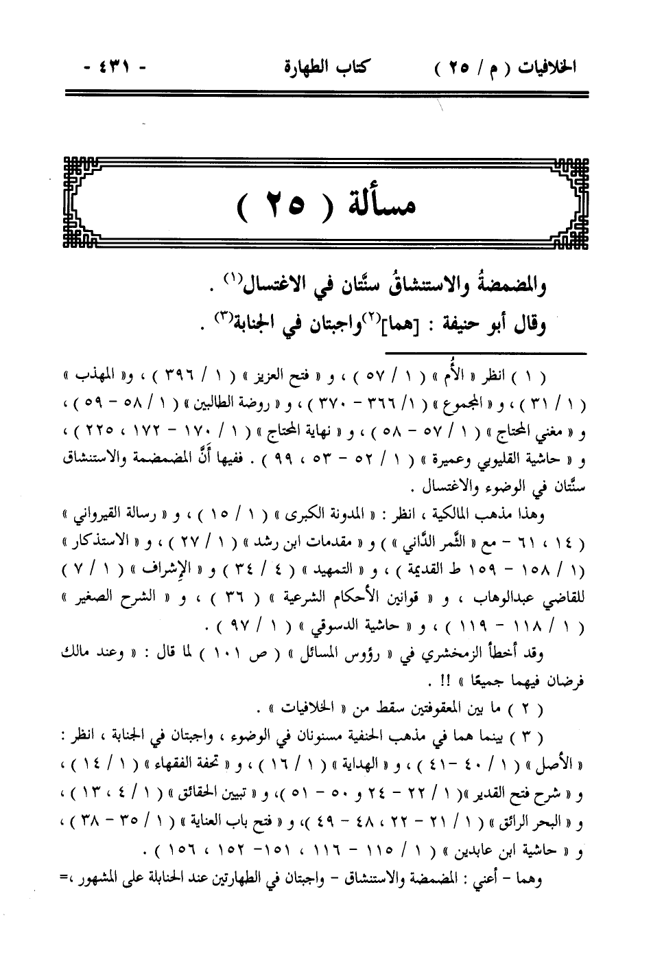 مسألة (25): والمضمضة والاستنشاق سنتان في الاغتسال.