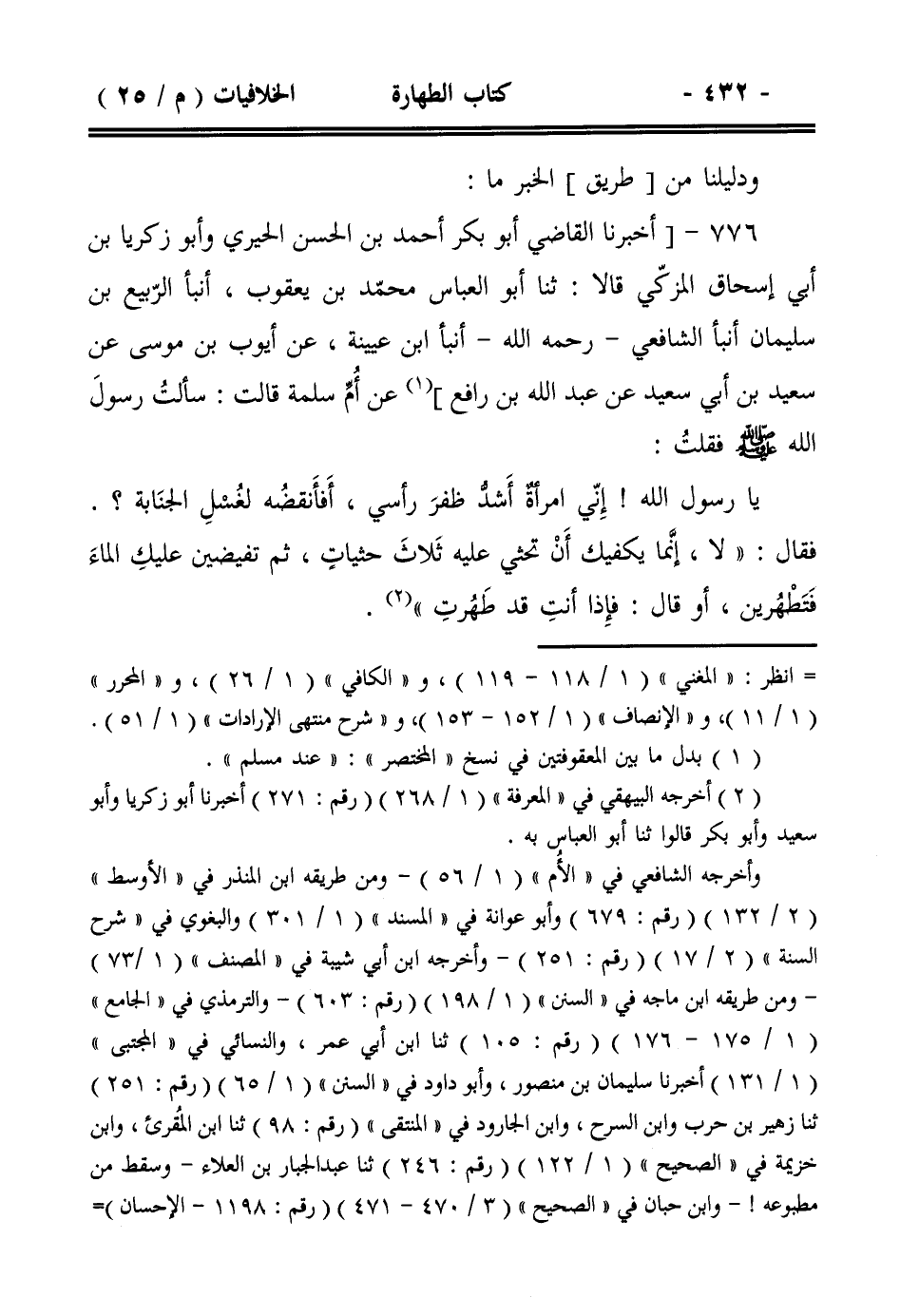 776- [أخبرنا القاضي أبو بكر أحمد بن الحسن الحيري وأبو زكريا بن أبي إسحاق المزكي قالا: ثنا أبو العباس محمد بن يعقوب، أنبأ الربيع بن سليمان أنبأ الشافعي -رحمه الله- أنبأ ابن عيينة، عن أيوب بن موسى عن سعيد بن أبي سعيد عن عبد الله بن رافع] عن أم سلمة قالت: سألت رسول الله صلى الله عليه وسلم فقلت:
