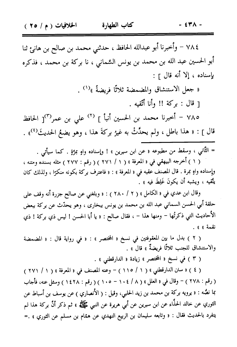 784- وأخبرنا أبو عبد الله الحافظ، حدثني محمد بن صالح بن هانئ ثنا أبو الحسين عبد الله بن محمد بن يونس السماني، نا بركة بن محمد، فذكره بإسناده، إلا أنه قال]: