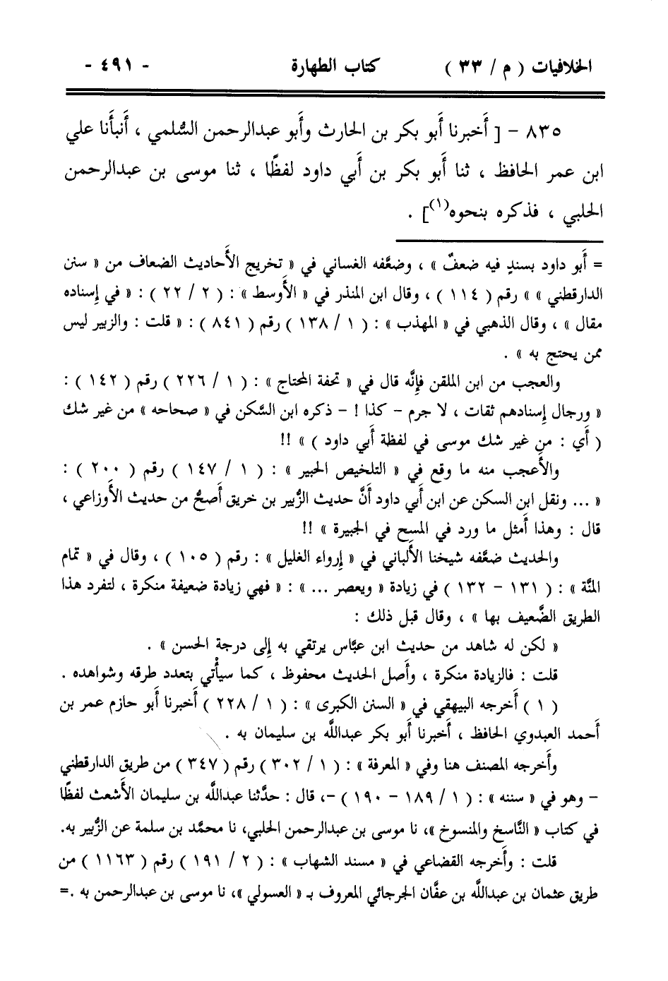 835- [أخبرنا أبو بكر بن الحارث وأبو عبد الرحمن السلمي، أنبأنا علي ابن عمر الحافظ، ثنا أبو بكر بن أبي داود لفظاً، ثنا موسى بن عبد الرحمن الحلبي، فذكره بنحوه].