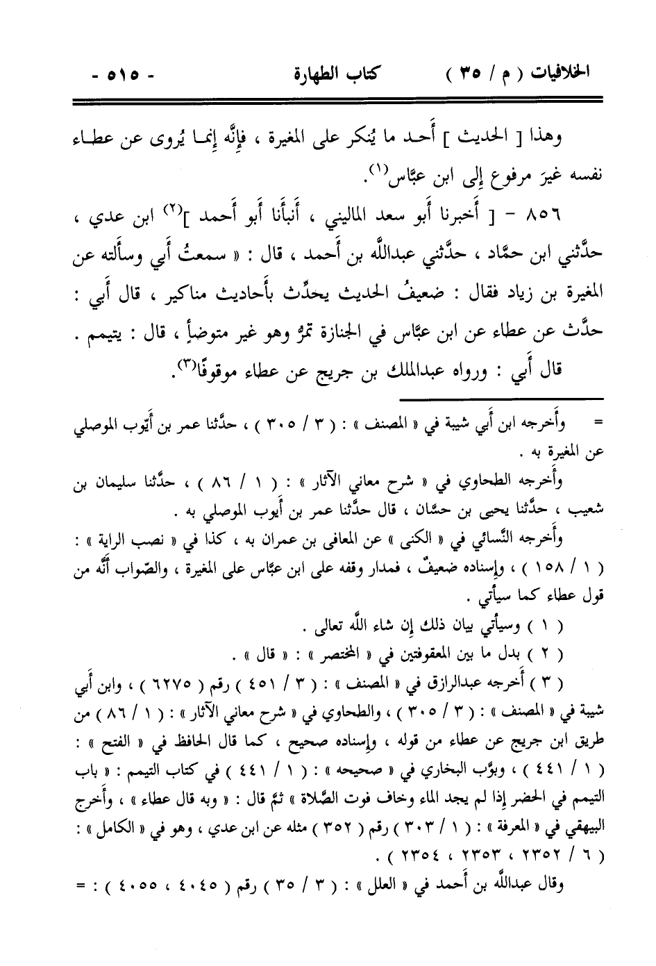 856- [أخبرنا أبو سعد الماليني، أنبأنا أبو أحمد] ابن عدي، حدثني ابن حماد، حدثني عبد الله بن أحمد، قال: ((سمعت أبي وسألته عن المغيرة بن زياد فقال: ضعيف الحديث يحدث بأحاديث مناكير، قال أبي: حدث عن عطاء عن ابن عباس في الجنازة تمر وهو غير متوضأٍ، قال: يتيمم.