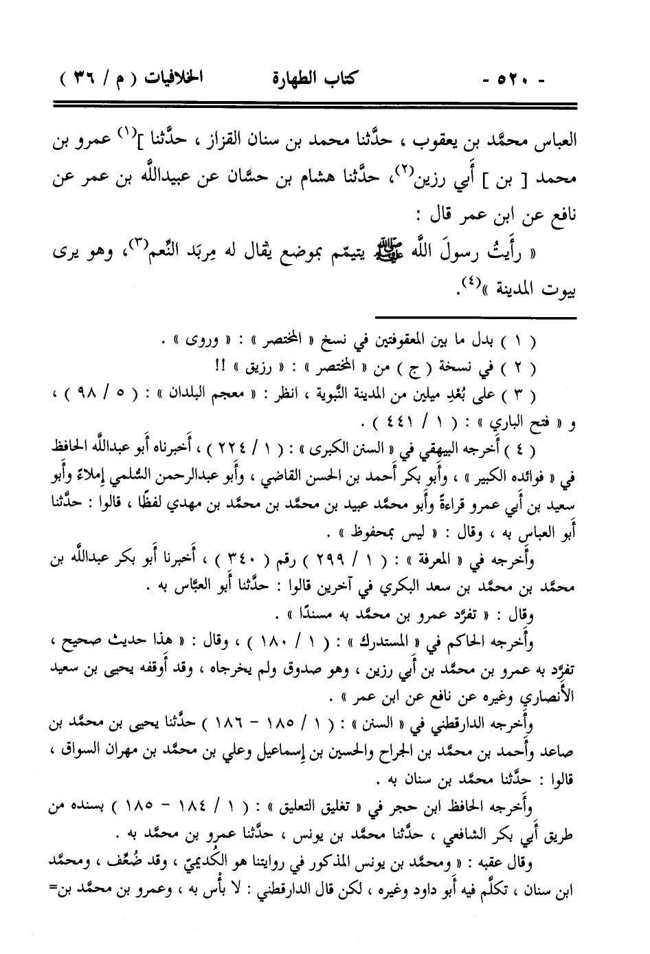 العباس محمد بن يعقوب، حدثنا محمد بن سنان القزاز، حدثنا] عمرو بن محمد [بن] أبي رزين، حدثنا هشام بن حسان عن عبيد الله بن عمر عن نافع عن ابن عمر قال:
