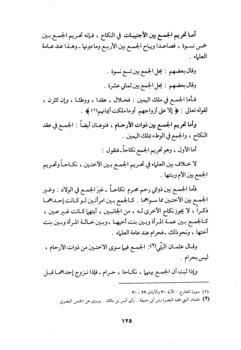 وَقَالَ عُثْمَان البتي الْجمع فِيمَا سوى الْأُخْتَيْنِ من ذَوَات الْأَرْحَام لَيْسَ بِحرَام