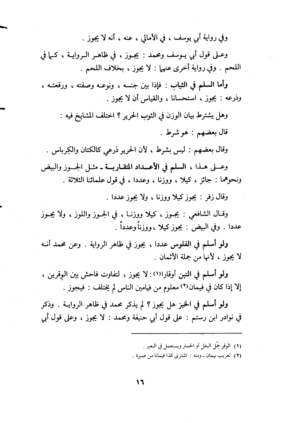وعَلى هَذَا السّلم فِي الْأَعْدَاد المتقاربة مثل الْجَوْز وَالْبيض وَنَحْوهمَا جَائِز كَيْلا ووزنا وعددا فِي قَول عُلَمَائِنَا الثَّلَاثَة