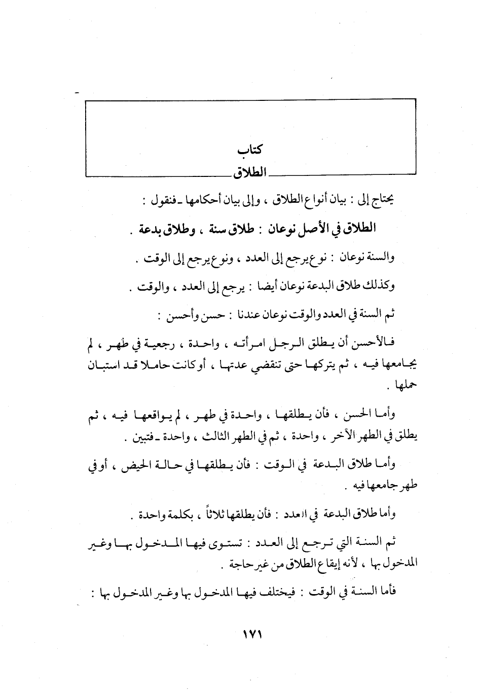 يحْتَاج إِلَى بَيَان أَنْوَاع الطَّلَاق وَإِلَى بَيَان أَحْكَامهَا فَنَقُول الطَّلَاق فِي الأَصْل نَوْعَانِ طَلَاق سنة وَطَلَاق بِدعَة