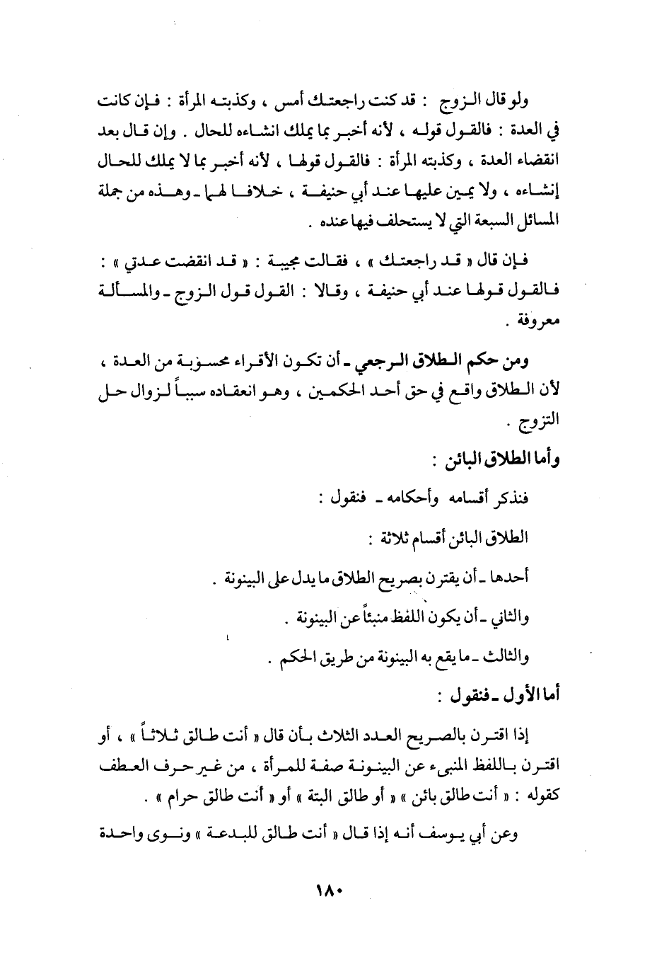 وَأما الطَّلَاق الْبَائِن فَنَذْكُر أقسامه وَأَحْكَامه فَنَقُول الطَّلَاق الْبَائِن أَقسَام ثَلَاثَة أَحدهَا أَن يقْتَرن بِصَرِيح الطَّلَاق مَا يدل على الْبَيْنُونَة وَالثَّانِي أَن يكون اللَّفْظ منبئا عَن الْبَيْنُونَة وَالثَّالِث مَا يَقع بِهِ الْبَيْنُونَة من طَرِيق الحكم