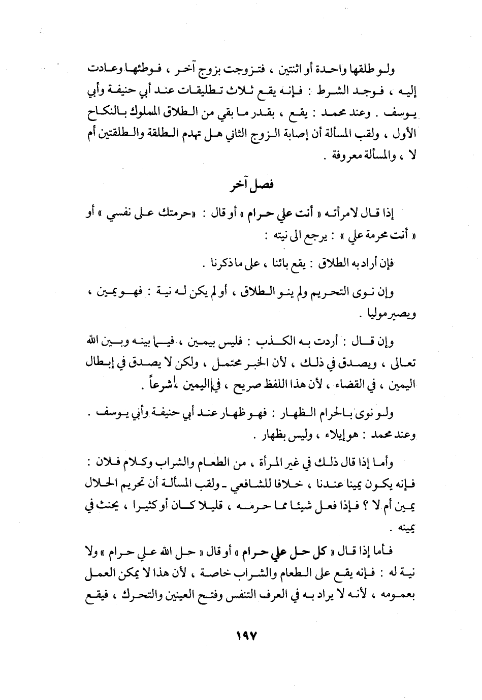 فصل آخر إِذا قَالَ لامْرَأَته أَنْت عَليّ حرَام