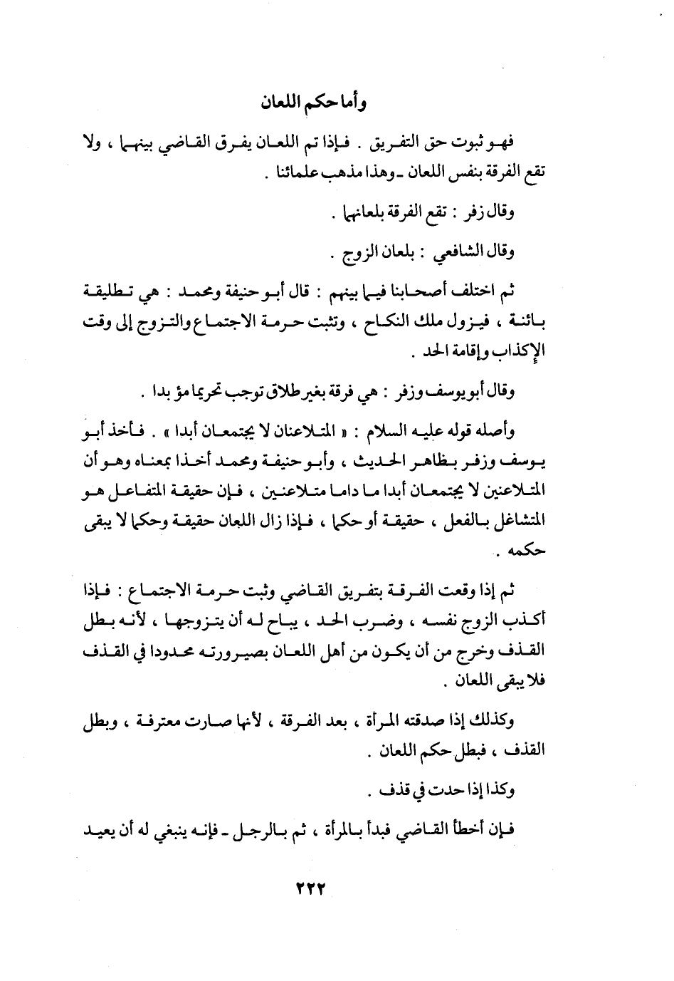وَأما حكم اللّعان فَهُوَ ثُبُوت حق التَّفْرِيق