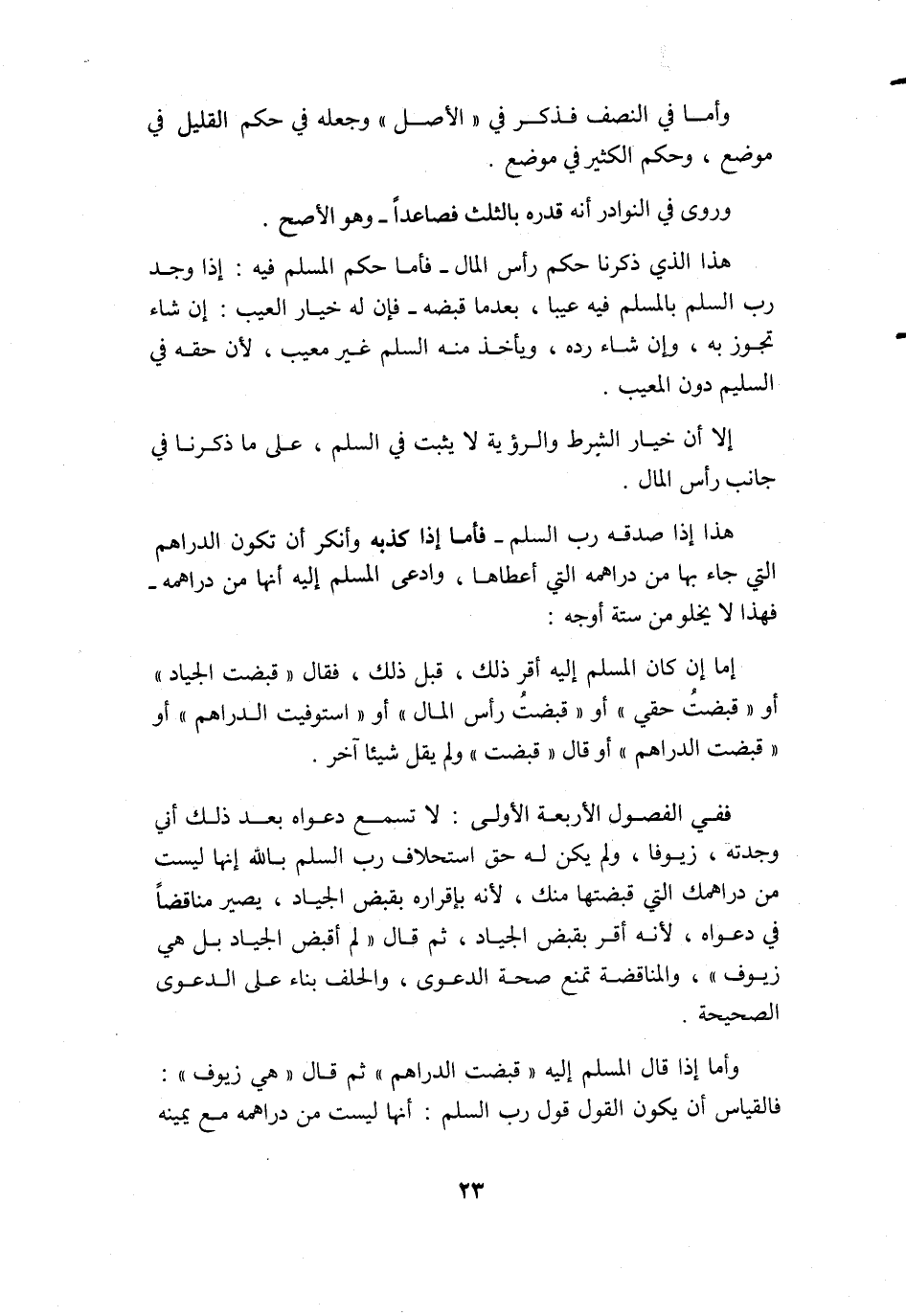 وَأما إِذا قَالَ الْمُسلم إِلَيْهِ قبضت الدَّرَاهِم ثمَّ قَالَ هِيَ زيوف فَالْقِيَاس أَن يكون القَوْل قَول رب السّلم إِنَّهَا لَيست من دَرَاهِمه مَعَ يَمِينه