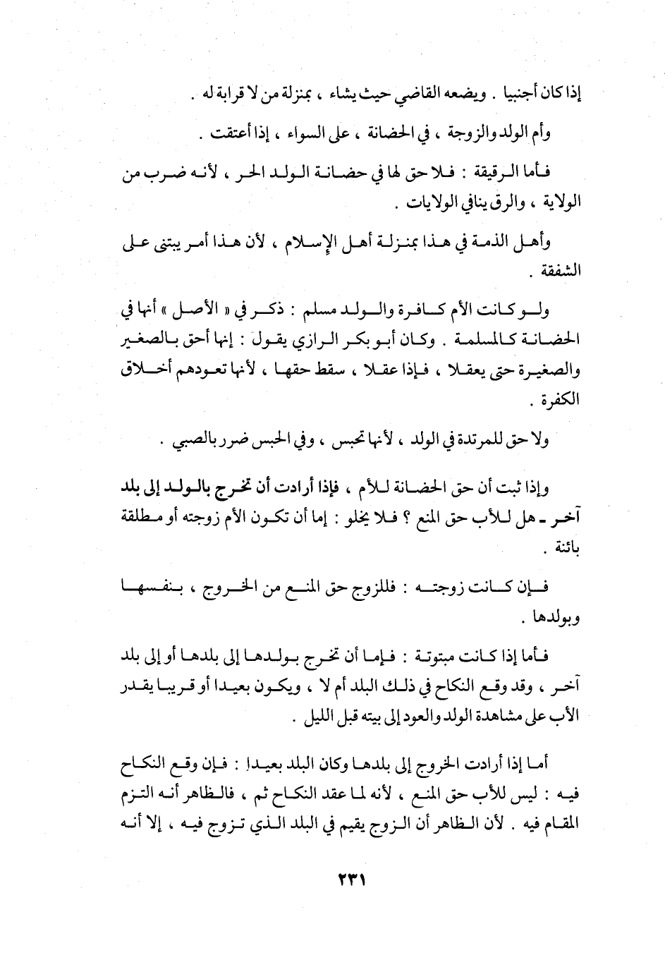وَإِذا ثَبت أَن حق الْحَضَانَة للْأُم فَإِذا أَرَادَت أَن تخرج بِالْوَلَدِ إِلَى بلد آخر هَل للْأَب حق الْمَنْع فَلَا يَخْلُو إِمَّا أَن تكون الْأُم زَوجته أَو مُطلقَة بَائِنَة