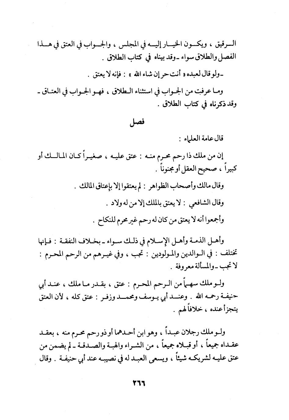 فصل قَالَ عَامَّة الْعلمَاء إِن من ملك ذَا رحم