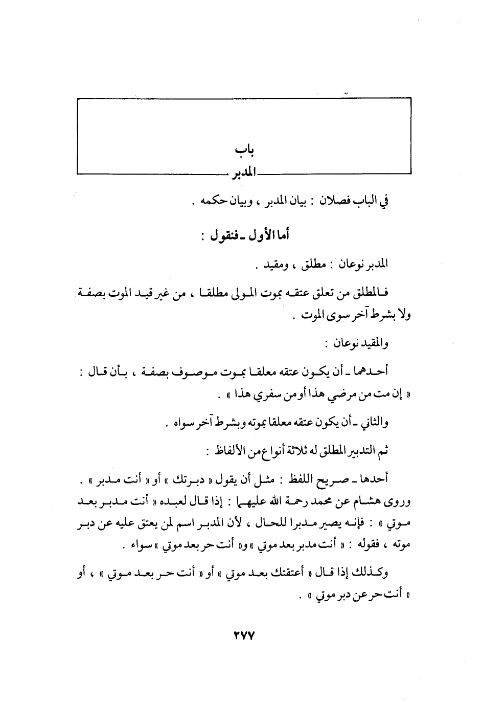 فِي الْبَاب فصلان بَيَان الْمُدبر وَبَيَان حكمه