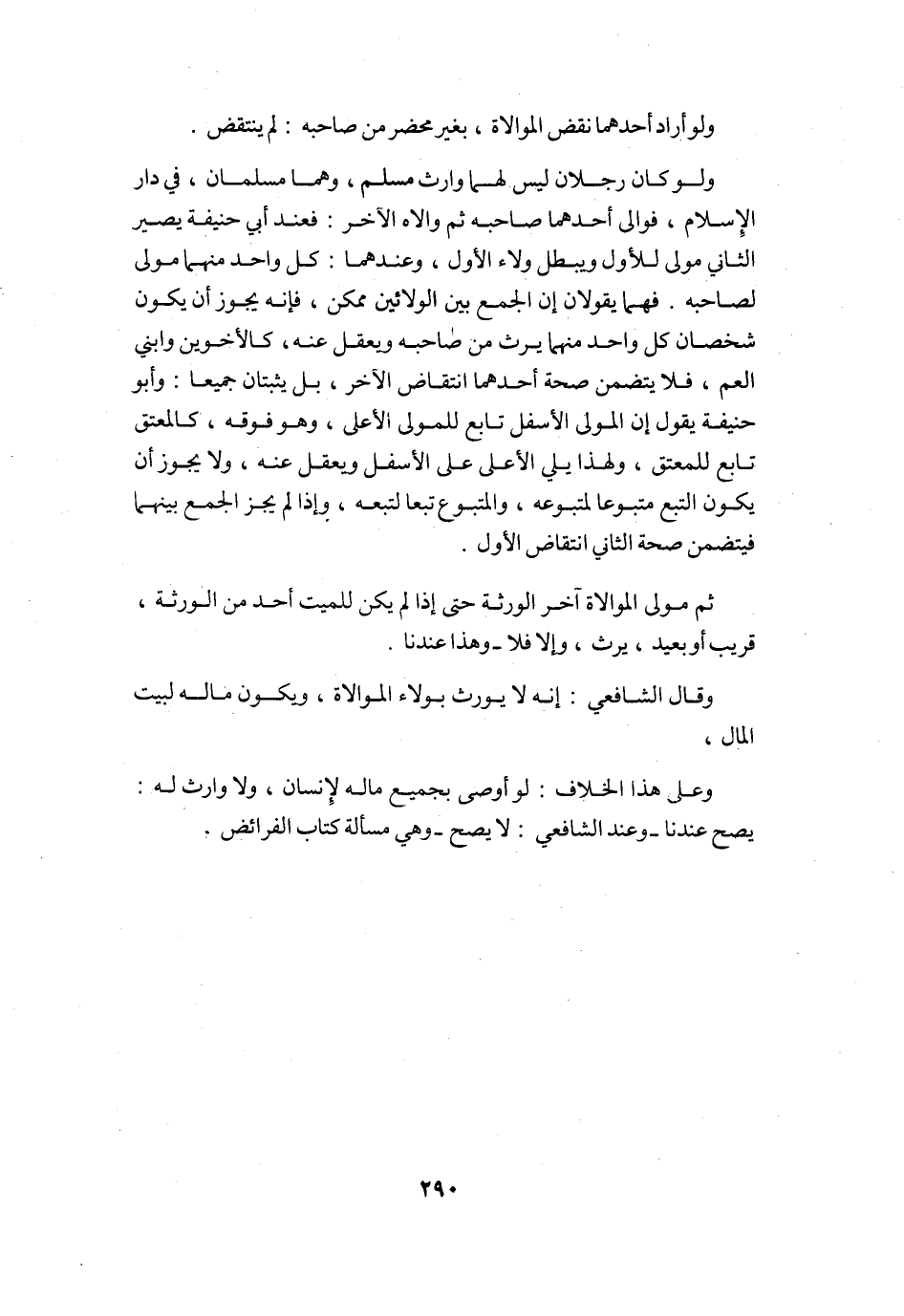 وَقَالَ الشَّافِعِي إِنَّه لَا يُورث بولاء الْمُوَالَاة وَيكون مَاله لبيت المَال وعَلى هَذَا الْخلاف لَو أوصى بِجَمِيعِ مَاله لإِنْسَان وَلَا وَارِث لَهُ يَصح عندنَا وَعند الشَّافِعِي لَا يَصح وَهِي مَسْأَلَة كتاب الْفَرَائِض