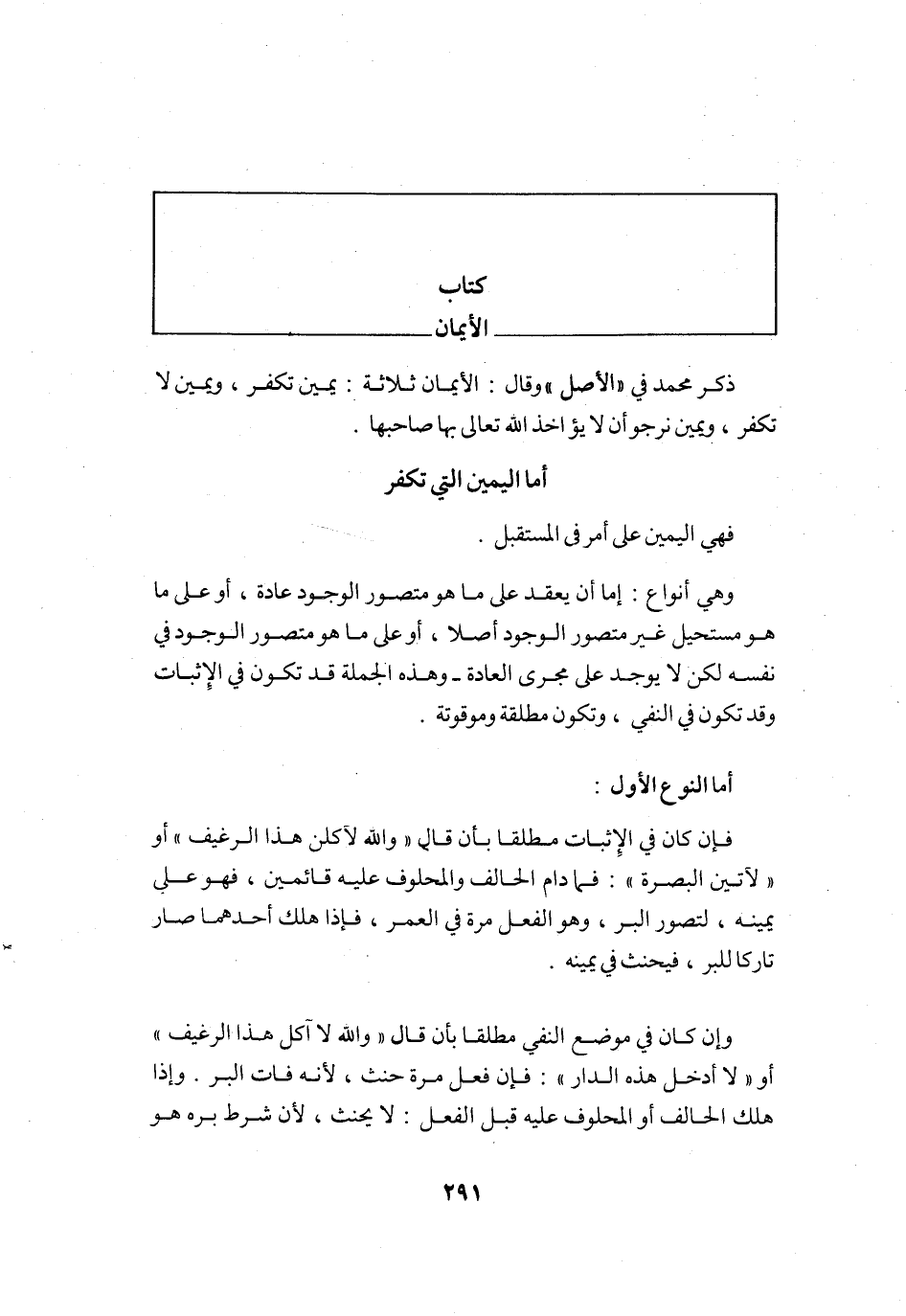 ذكر مُحَمَّد فِي الأَصْل وَقَالَ الْأَيْمَان ثَلَاثَة يَمِين تكفر وَيَمِين لَا تكفر وَيَمِين نرجو أَن لَا يُؤَاخذ الله تَعَالَى بهَا صَاحبهَا
