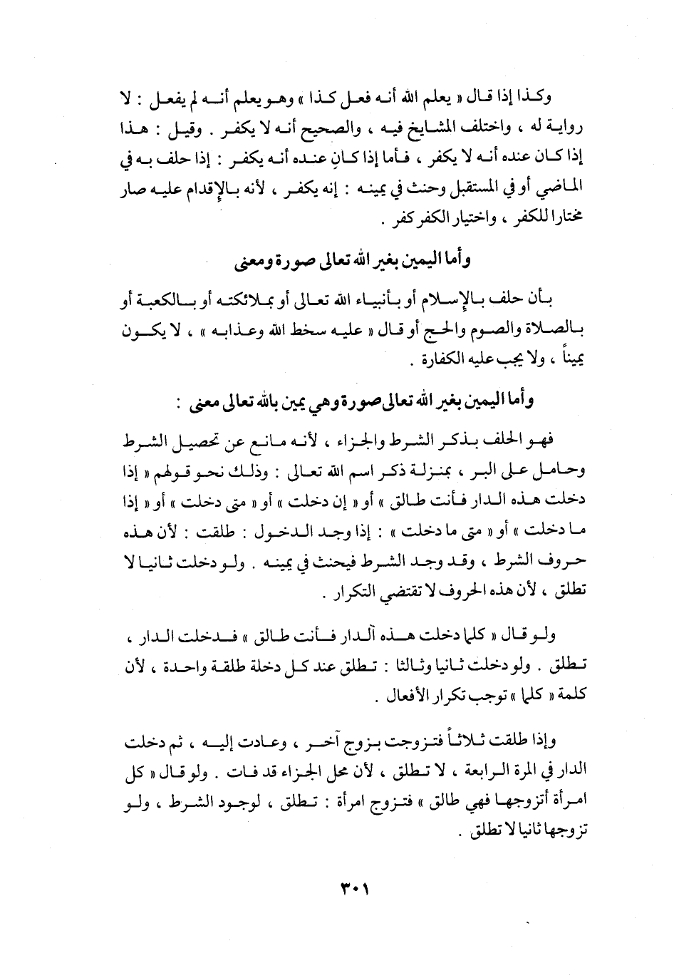 وَقيل هَذَا إِذا كَانَ عِنْده أَنه لَا يكفر فَأَما إِذا كَانَ عِنْده أَنه يكفر إِذا حلف بِهِ فِي الْمَاضِي أَو فِي الْمُسْتَقْبل وَحنث فِي يَمِينه إِنَّه يكفر لِأَنَّهُ بالإقدام عَلَيْهِ صَار مُخْتَار للكفر وَاخْتِيَار الْكفْر كفر