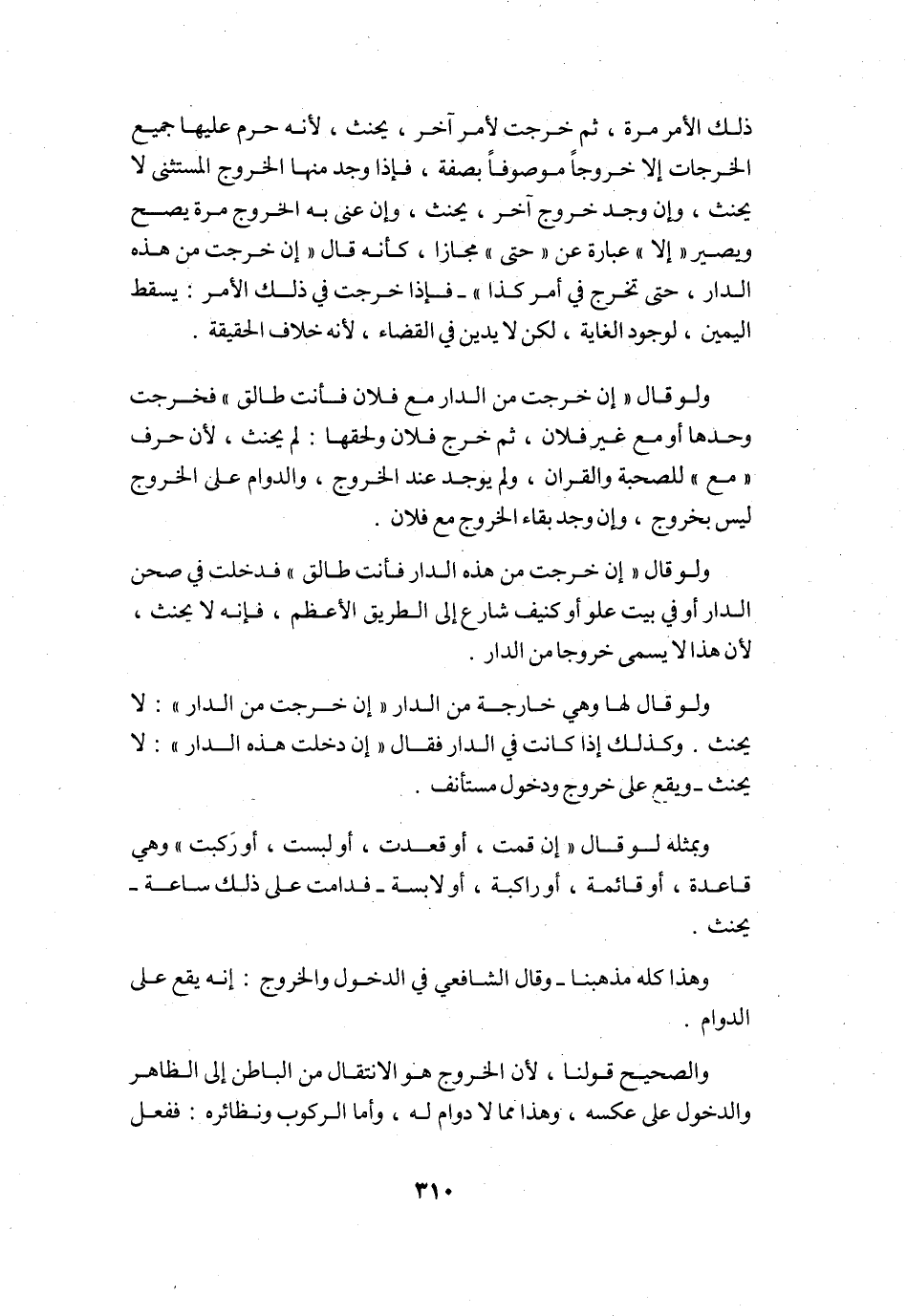 وَهَذَا كُله مَذْهَبنَا وَقَالَ الشَّافِعِي فِي الدُّخُول وَالْخُرُوج إِنَّه يَقع على الدَّوَام