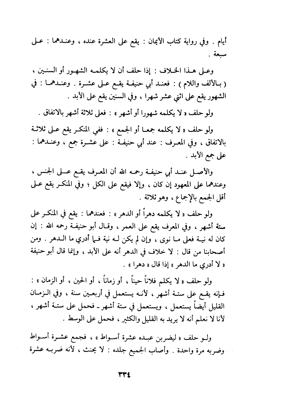 وعَلى هَذَا الْخلاف إِذا حلف أَن لَا يكلمهُ الشُّهُور أَو السنين (بِالْألف وَاللَّام) فَعِنْدَ أبي حنيفَة يَقع على عشرَة