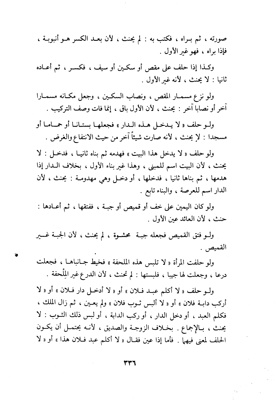 وَلَو نزع مِسْمَار المقص ونصاب السكين وَجعل مَكَانَهُ مسمارا آخر أَو نِصَابا آخر يَحْنَث لِأَن الأول بَاقٍ إِنَّمَا فَاتَ وصف التَّرْكِيب