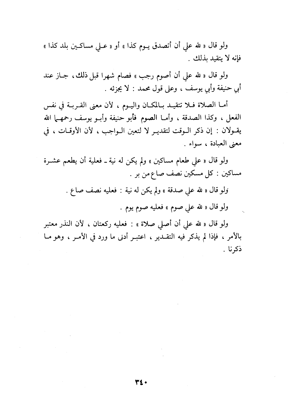 أما الصَّلَاة فَلَا تتقيد بِالْمَكَانِ وَالْيَوْم لِأَن معنى الْقرْبَة فِي نفس الْفِعْل وَكَذَا الصَّدَقَة وَأما الصَّوْم ف أَبُو حنيفَة وَأَبُو يُوسُف رحمهمَا الله يَقُولَانِ إِن ذكر الْوَقْت لتقدير لَا لتعين الْوَاجِب لِأَن الْأَوْقَات فِي معنى الْعِبَادَة سَوَاء