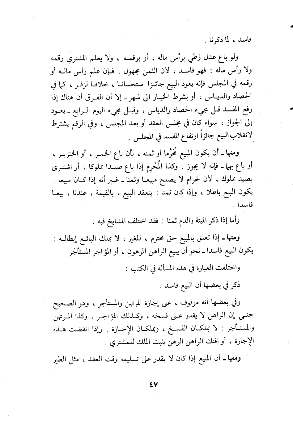 وَمِنْهَا إِذا تعلق بِالْمَبِيعِ حق مُحْتَرم للْغَيْر لَا يملك البَائِع إِبْطَاله يكون البيع فَاسِدا نَحْو أَن يَبِيع الرَّاهِن الْمَرْهُون أَو المؤاجر الْمُسْتَأْجر