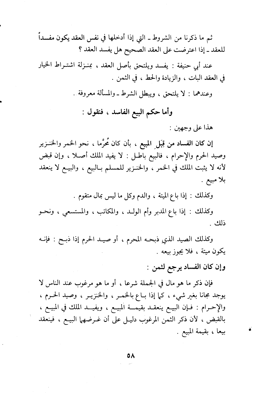 وَإِن كَانَ الْفساد يرجع لثمن فَإِن ذكر مَا هُوَ مَال فِي الْجُمْلَة شرعا أَو مَا هُوَ مَرْغُوب عِنْد النَّاس لَا يُوجد مجَّانا بِغَيْر شَيْء كَمَا إِذا بَاعَ بِالْخمرِ وَالْخِنْزِير وصيد الْحرم وَالْإِحْرَام فَإِن البيع ينْعَقد بِقِيمَة الْمَبِيع ويفيد الْملك فِي الْمَبِيع بِالْقَبْضِ لِأَن ذكر الثّمن المرغوب دَلِيل على أَن غرضهما البيع فَينْعَقد بيعا بِقِيمَة الْمَبِيع