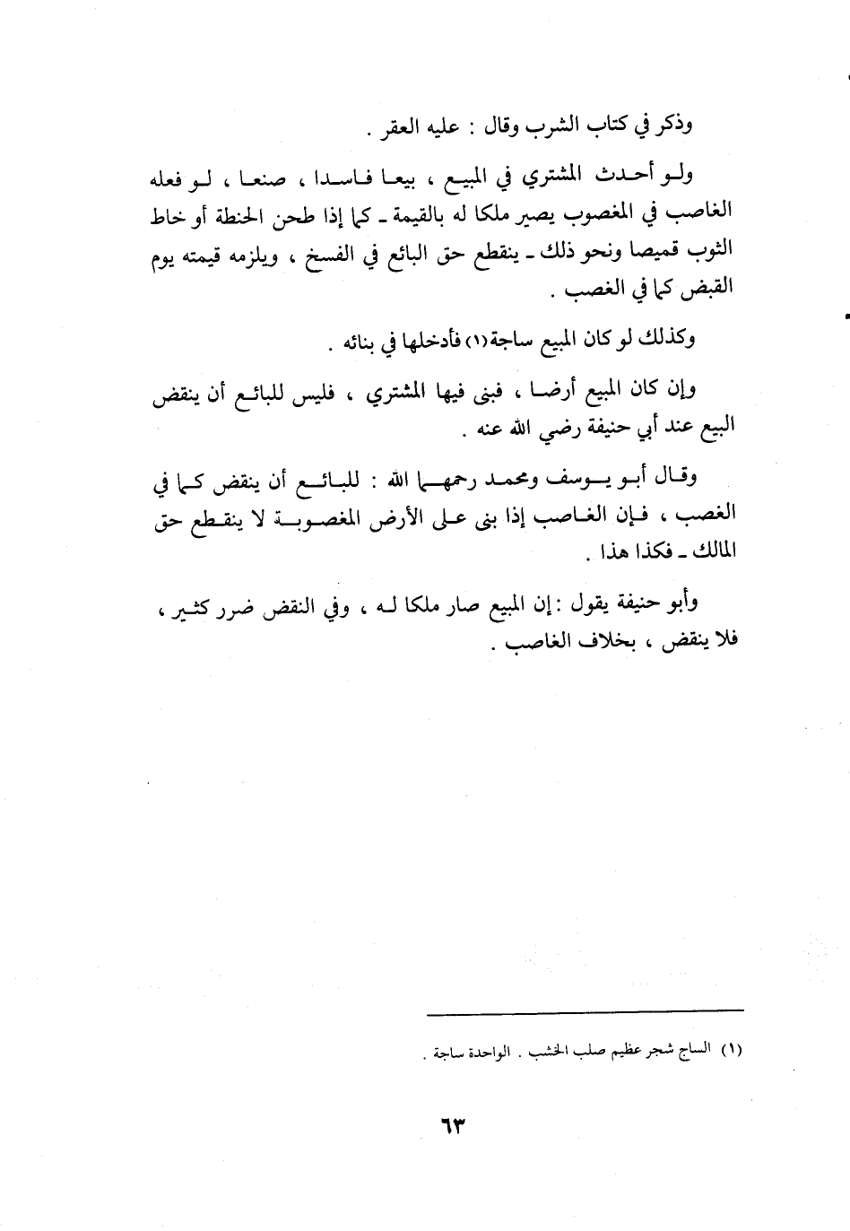 وَكَذَلِكَ لَو كَانَ الْمَبِيع ساجة فَأدْخلهَا فِي بنائِهِ