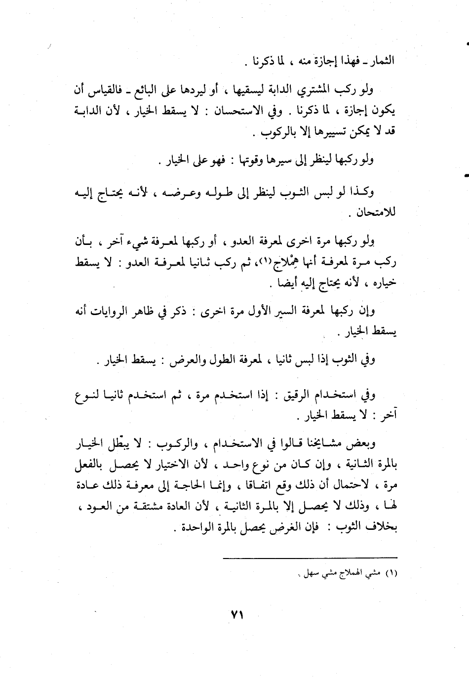 وَإِن ركبهَا لمعْرِفَة السّير الأول مرّة أُخْرَى ذكر فِي ظَاهر الرِّوَايَات أَنه يسْقط الْخِيَار