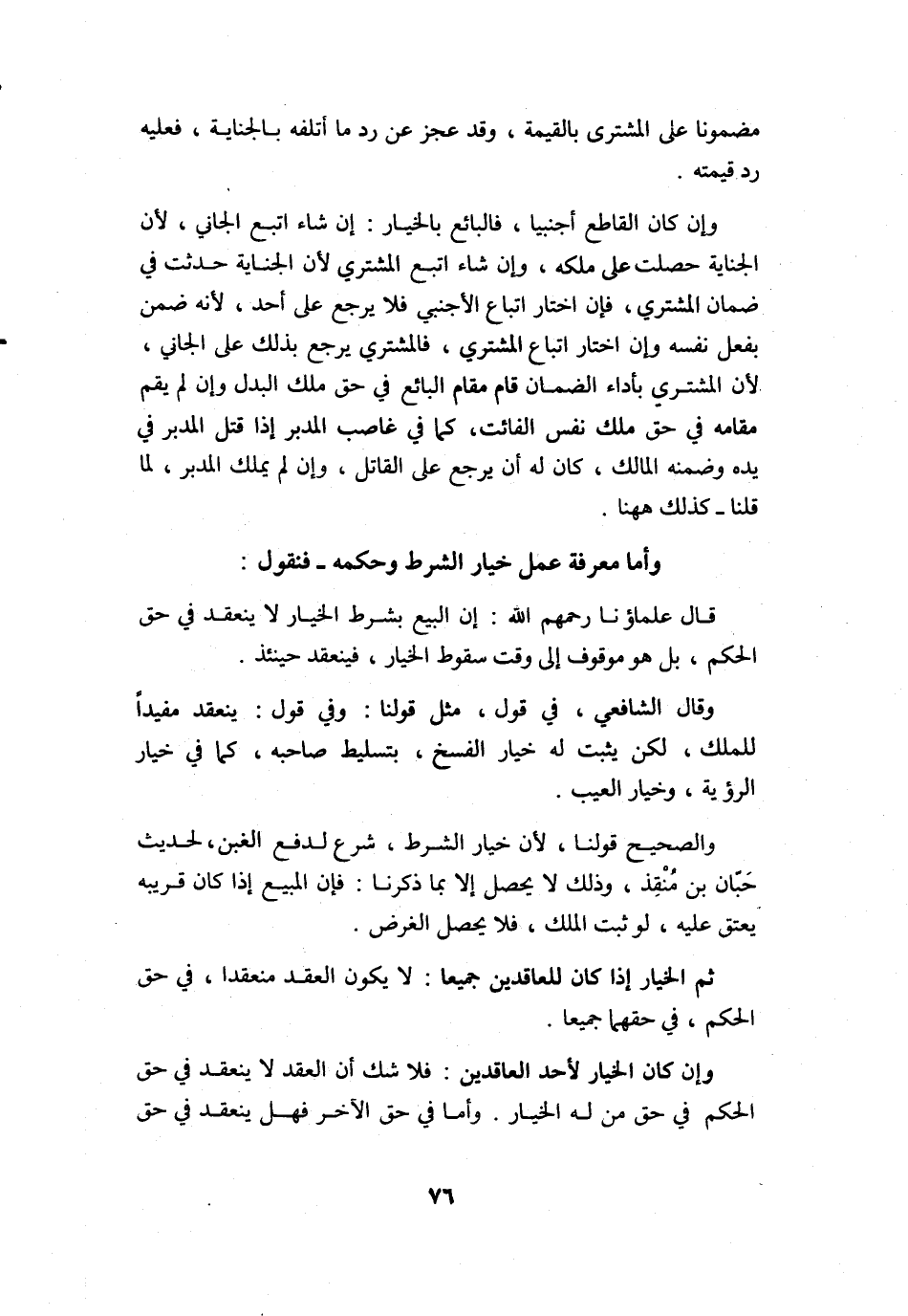 ثمَّ الْخِيَار إِذا كَانَ للعاقدين جَمِيعًا لَا يكون العقد منعقدا فِي حق الحكم فِي حَقّهمَا جَمِيعًا