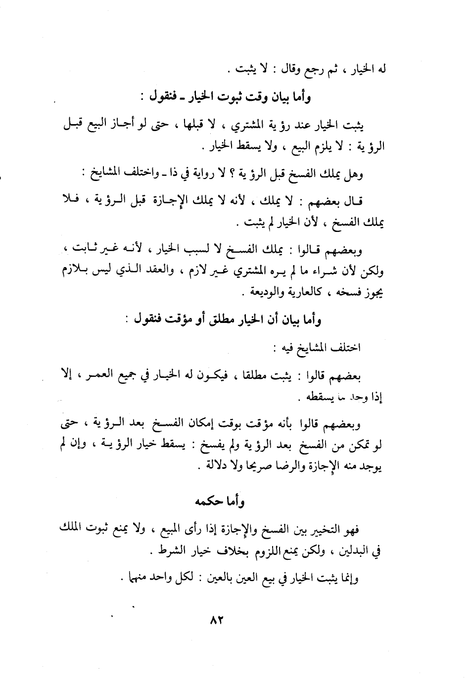 وَبَعْضهمْ قَالُوا بِأَنَّهُ مُؤَقّت بِوَقْت إِمْكَان الْفَسْخ بعد الرُّؤْيَة حَتَّى لَو تمكن من الْفَسْخ بعد الرُّؤْيَة وَلم يفْسخ يسْقط خِيَار الرُّؤْيَة وَإِن لم يُوجد مِنْهُ الْإِجَازَة وَالرِّضَا صَرِيحًا وَلَا دلَالَة