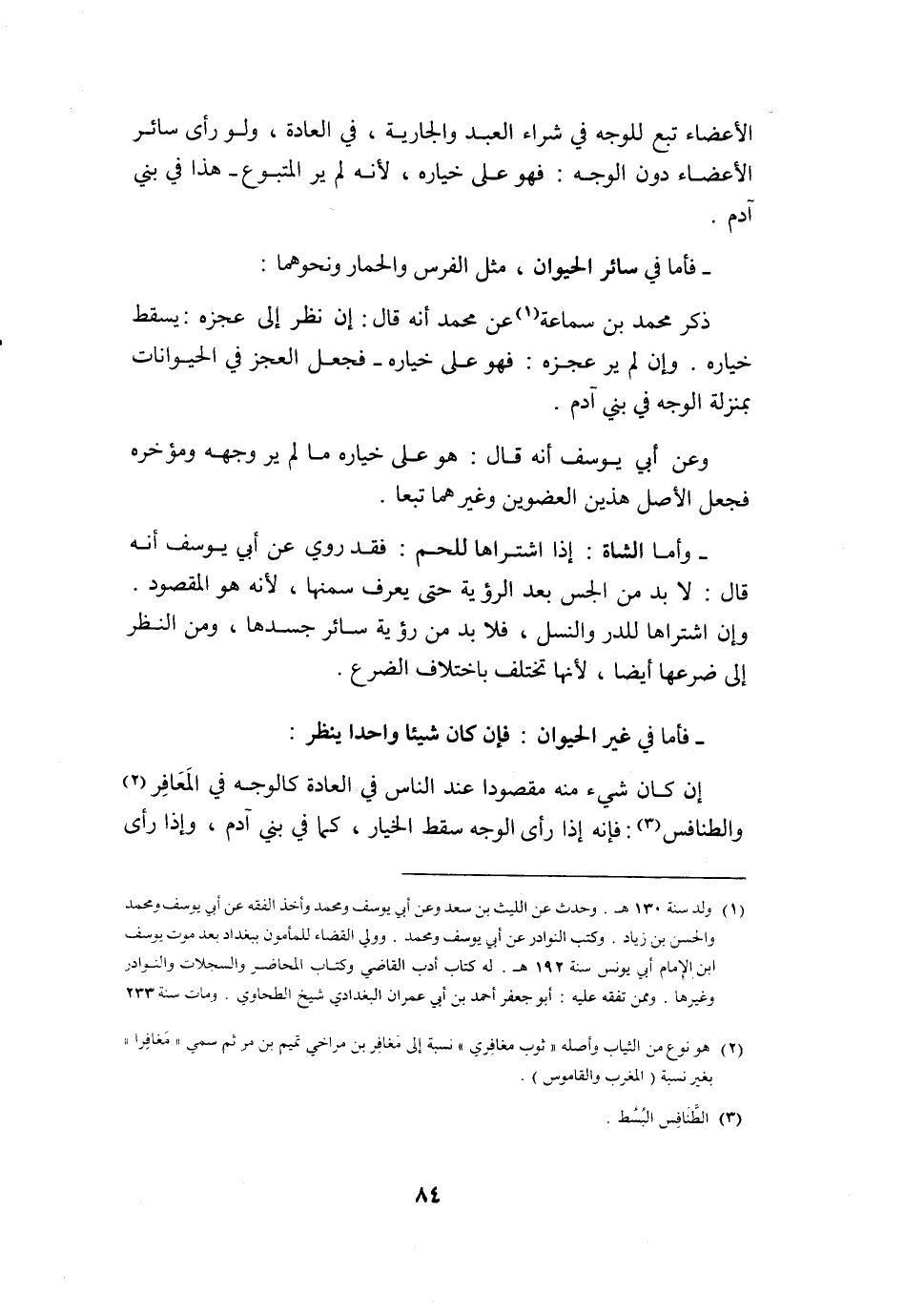 هَذَا فِي بني آدم فَأَما فِي سَائِر الْحَيَوَان مثل الْفرس وَالْحمار وَنَحْوهمَا ذكر مُحَمَّد بن سَمَّاعَة عَن مُحَمَّد أَنه قَالَ إِن نظر إِلَى عَجزه يسْقط خِيَاره