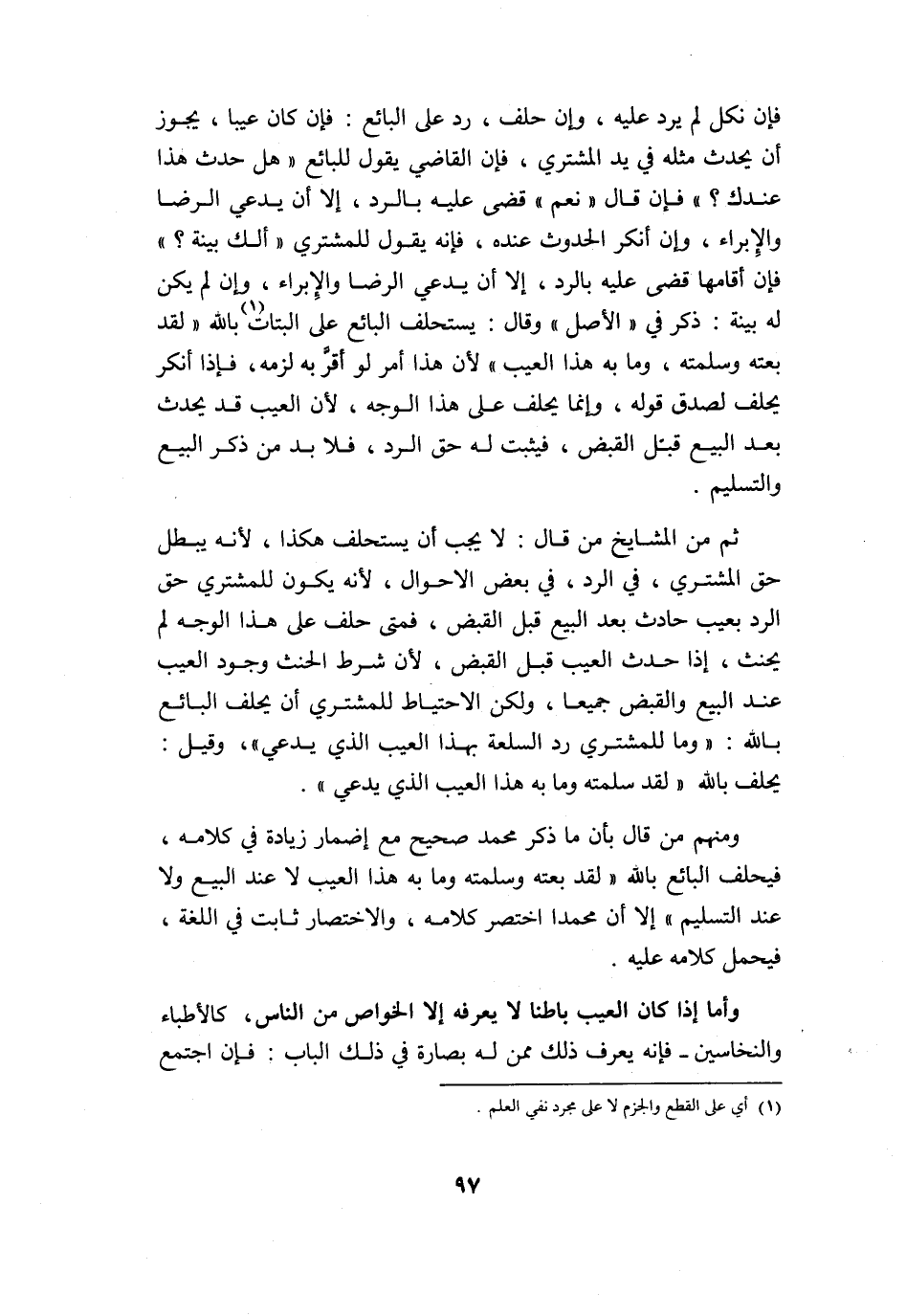 وَمِنْهُم من قَالَ بِأَن مَا ذكر مُحَمَّد صَحِيح مَعَ إِضْمَار زِيَادَة فِي كَلَامه فَيحلف البَائِع بِاللَّه لقد بِعته وسلمته وَمَا بِهِ هَذَا الْعَيْب لَا عِنْد البيع وَلَا عِنْد التَّسْلِيم إِلَّا أَن مُحَمَّدًا اختصر كَلَامه والاختصار ثَابت فِي اللُّغَة فَيحمل كَلَامه عَلَيْهِ