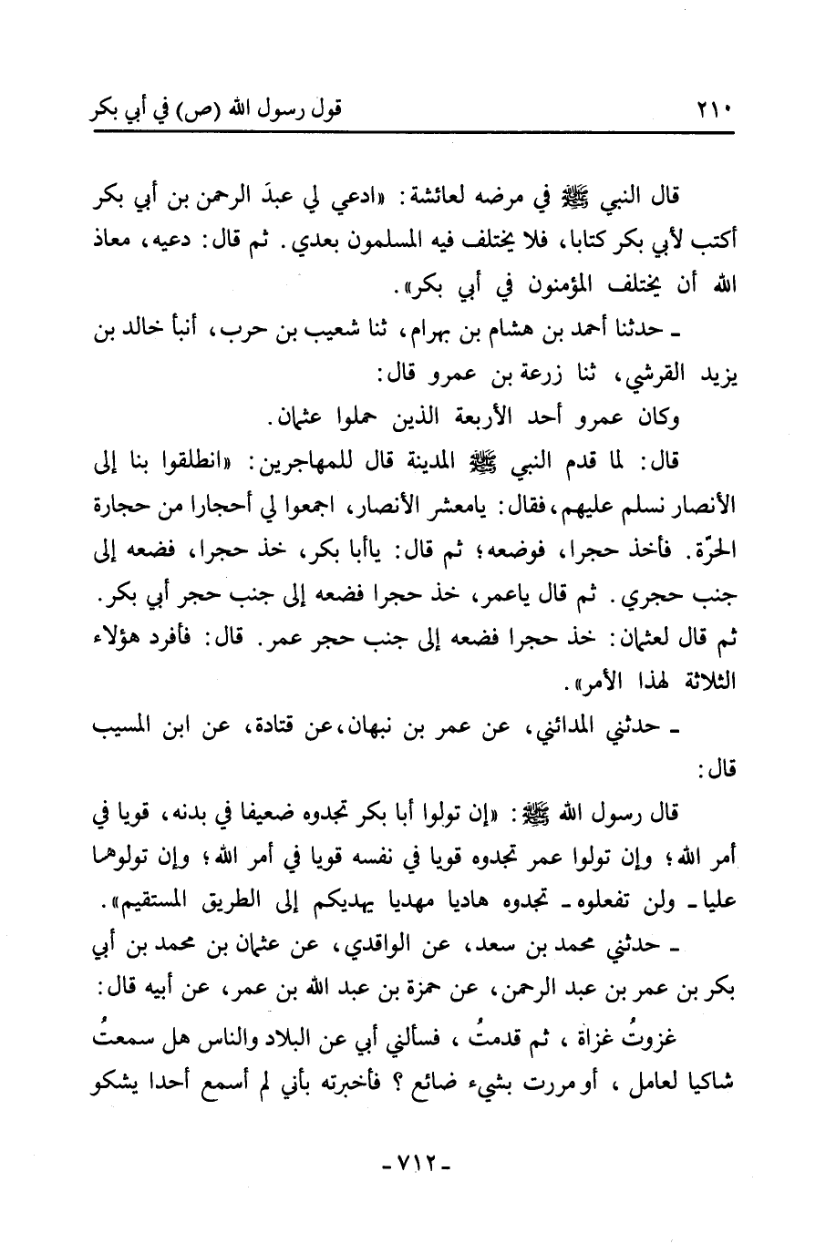 عَنْ صَالِحِ بْنِ كَيْسَانَ قَالَ: لَمَّا بَايَعَ النَّاسُ عَلِيًّا كَتَبَ إلى خالد ابن العاص
