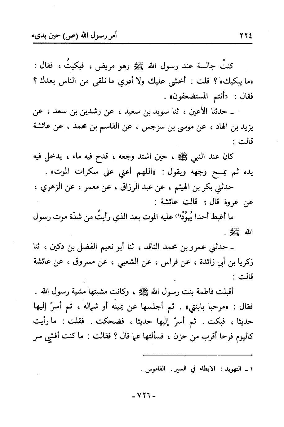 فقال الزبير: لا بعد (كذا) تقدمي ويراك الناس ويصلح الله ذات بينهم!! قالت: ما أظنني إلا راجعة، سمعت رسول الله صلّى الله عليه وسلم يقول: كيف بإحداكن إذا نبحتها كلاب الحوأب.